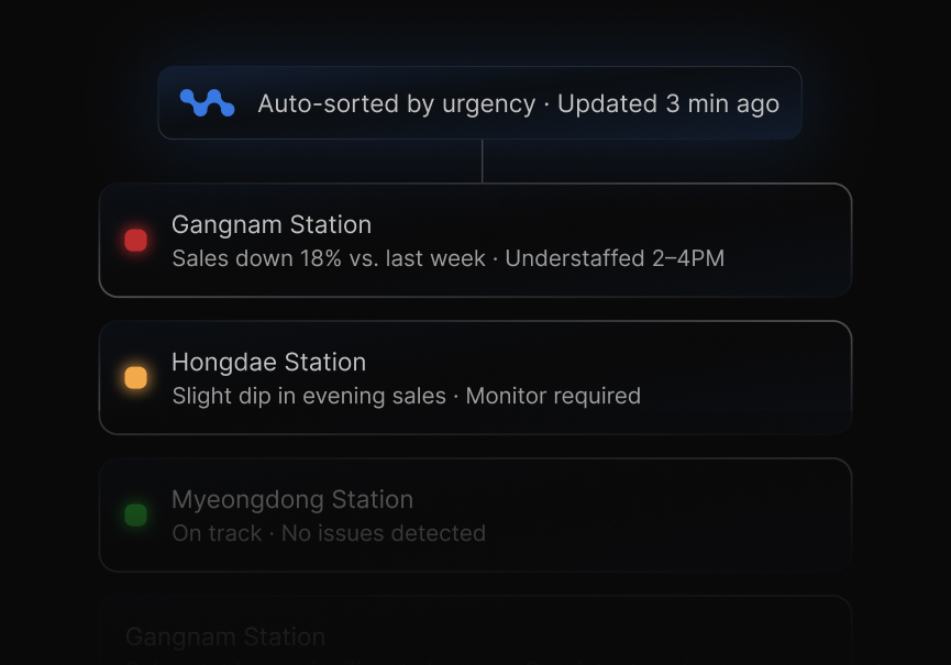 Unlike standard BI dashboards, StoreAgent connects operational context — weather forecasts, staffing schedules, promotion calendars — directly to store performance data in real time. It detects the signals that matter most right now, so your team can respond faster and with greater precision.